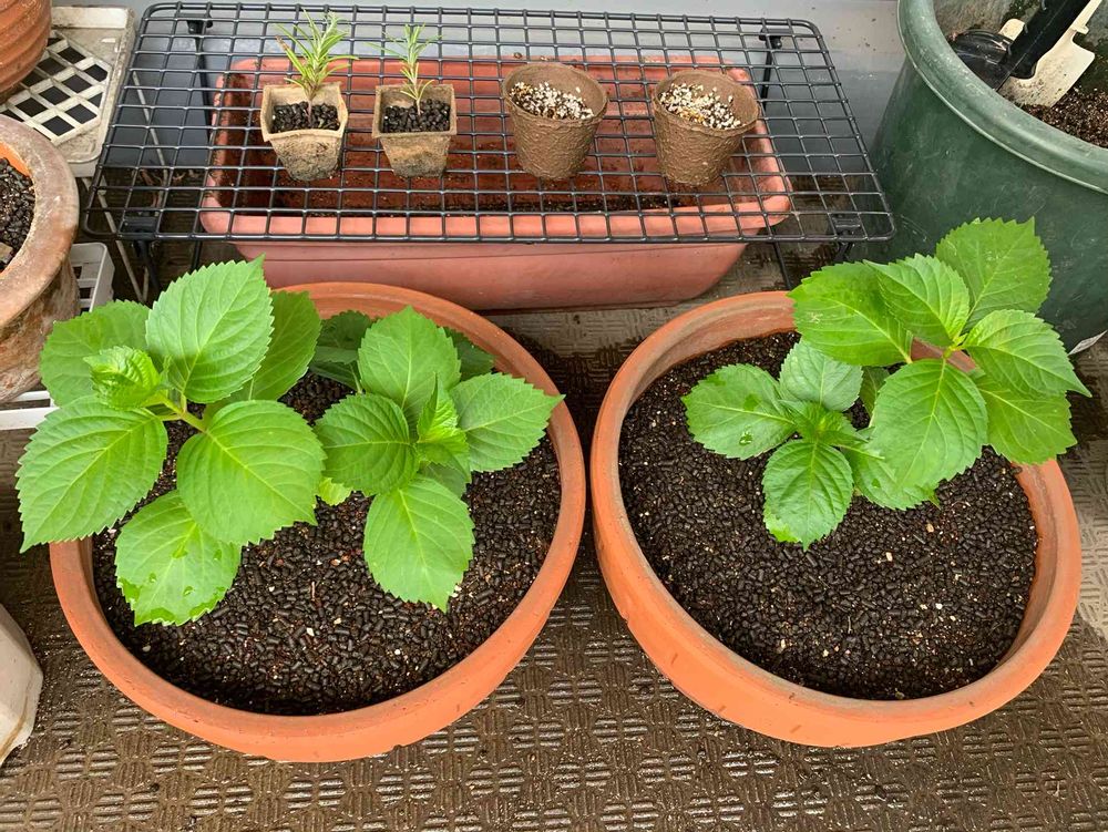 なかなか鉢を用意できなくてポットのまま頑張ってもらっていたアジサイ