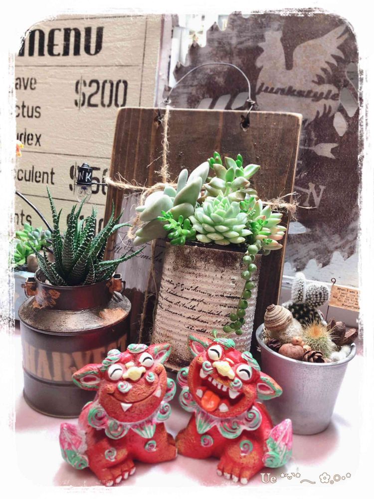 シーサーは 娘が修学旅行で買ってきてくれたお土産なんですけど、何とも愉快なお顔をしてますよね~♪ (*≧艸≦)