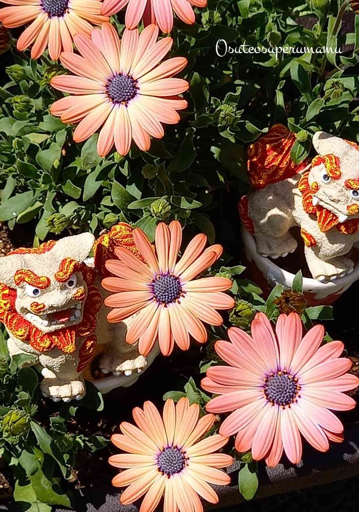 オステオスペルマム 紫、ピンク、オレンジ色がお庭を明るくしてくれてます