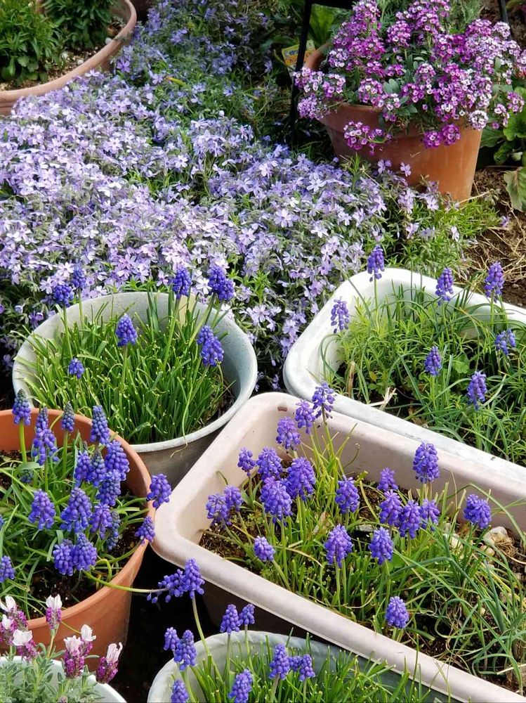 あちこちに出てきたムスカリを拾い集めてプランターに