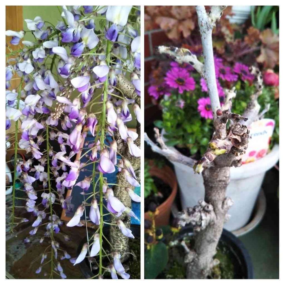 左、去年の藤の盆栽です。綺麗でした。🥰