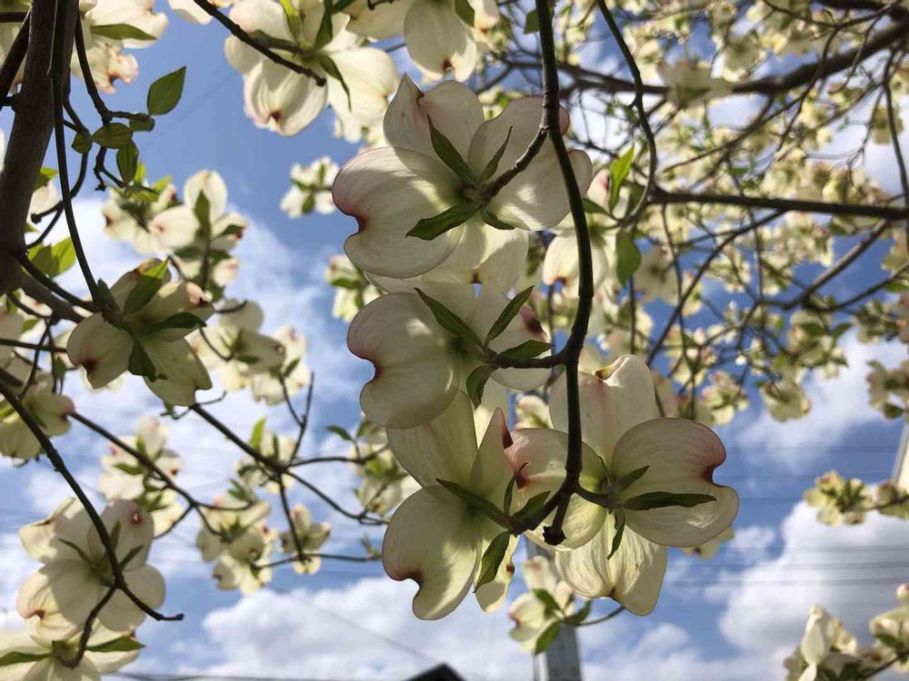 追記🧐🔎「ハナミズキの花に見えているのは苞(ほう)という葉の一種で、中心にあるめしべのように見えるものが花序(かじょ)という4mm程の小さな花が集合しているもの」