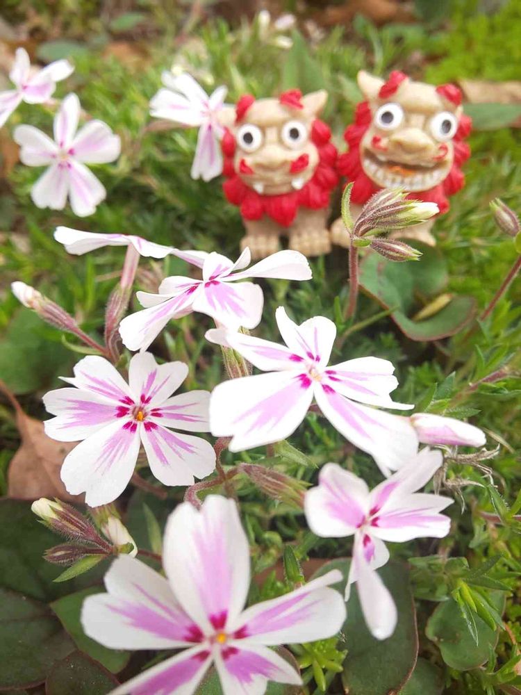 わ~ミックスで可愛いシバザクラさんですね💕種類も増えてきたのかしら…😍シーサー楽しそうでこちらまでハッピーになれますありがとう🤗🎶