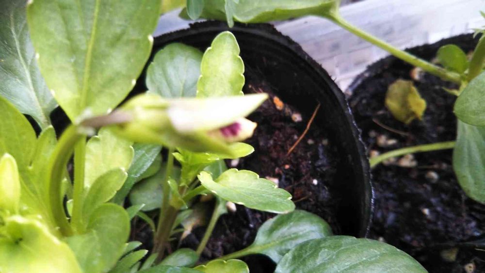 イタリアのパンジー、後輩くんの蕾は白のよう。中に模様入りみたいです。開花が楽しみ👩🌾🌸
