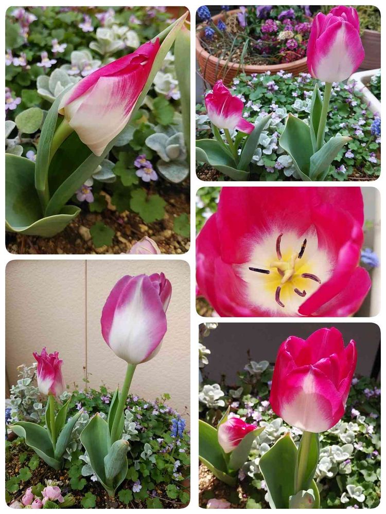 ピンクと白のチューリップ