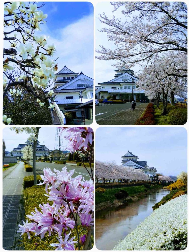 今年も🏯悠里館をバックに遠くから🌸お花見してきました✨白いモクレン、ユキヤナギ、ピンク色のコブシが綺麗です✿゚❀.(*´▽`*)❀.゚✿