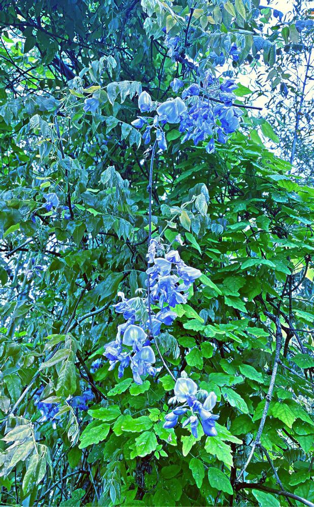 ♡この写真画像は、本日雨の止んだ隙に、犬の散歩コース途中にある坂道の一つの撮影スポットで、雨上がりの藤の花を撮影したものデスら😸