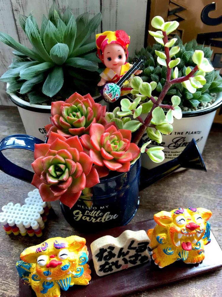 いつもの娘の修学旅行土産のシーサーさんと、キューピーちゃんで参加です(*^ω^*)