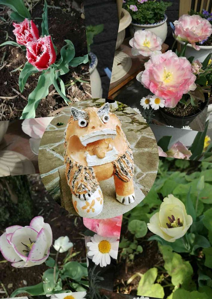 このシーサーさんは4/1の垂れ桜とリキュウバイのお庭にいます😅