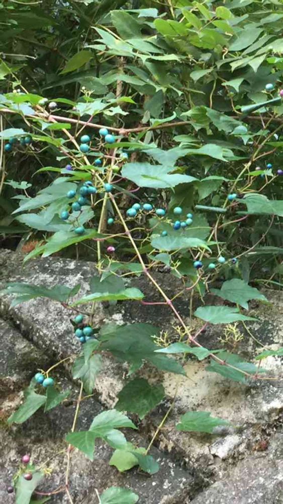 ノブドウ 綺麗なブルーになりました。日にあたりパールの様に光ってます。