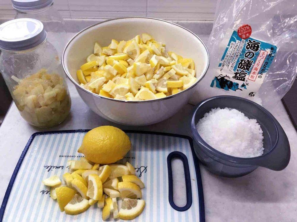 早く発酵する様にレモン🍋は小さくカットし20%の塩と混ぜビンに詰め常温保存
