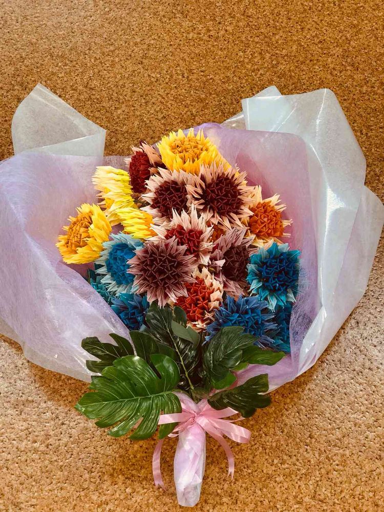 入院中のお花屋さんの為に 折り鶴で作った 花束💐