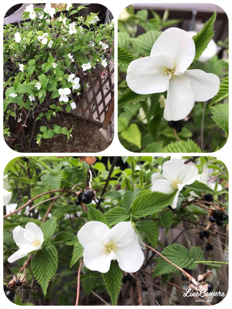 姉から頂いたシロヤマブキは昨年の実をつけたままお花を咲かせてくれてます😙❣️🎶