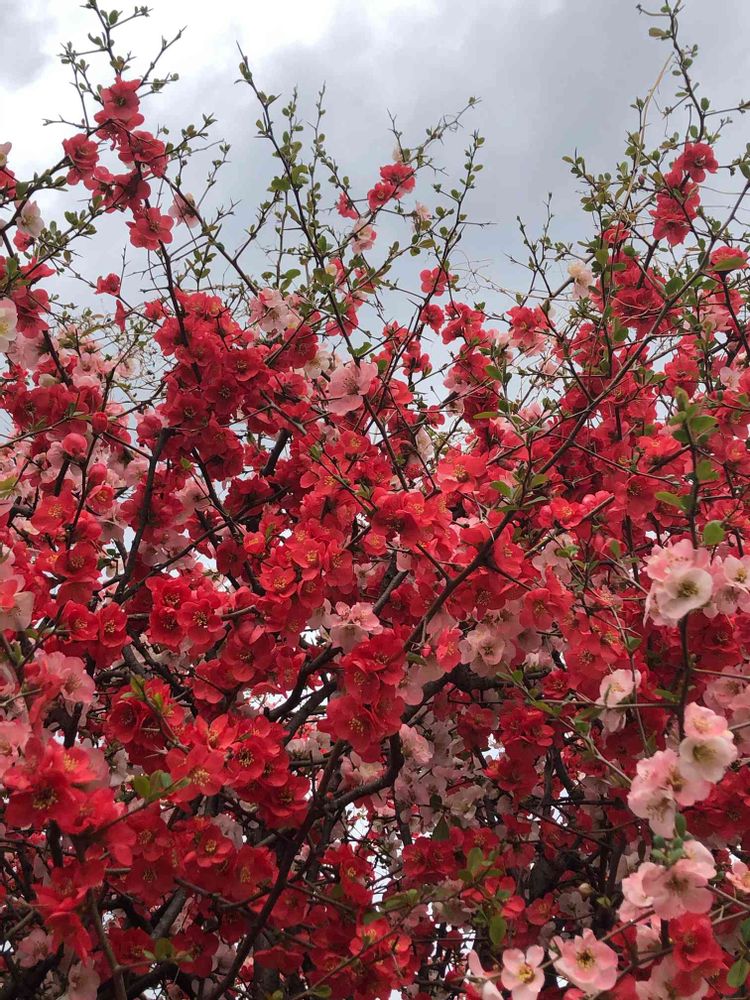 yurijaさんの木瓜,紫の花,東京多摩地区の投稿画像