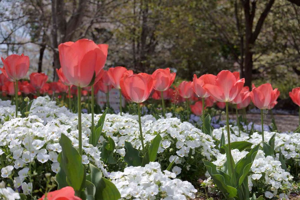 白いビオラが雪みたいで、チューリップ🌷を引き立ててたよ☺️