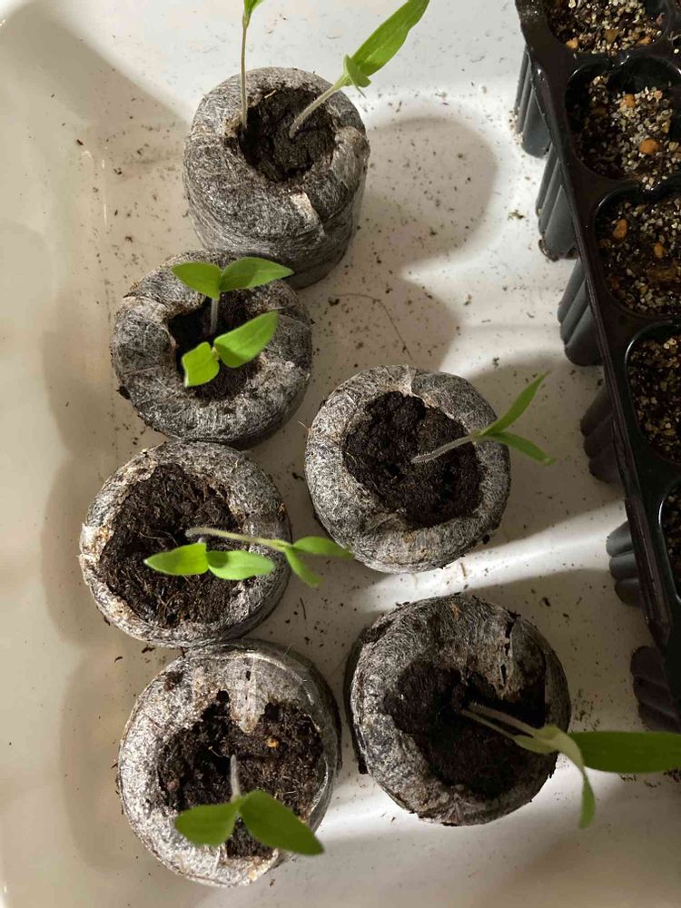 根っこ出て来たので鉢増ししました、もう少しお家の中で育てます♪🍅