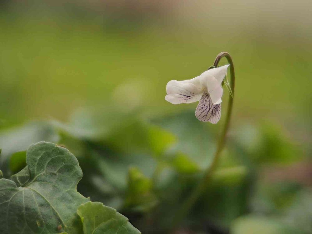 白い花に、紫の模様が綺麗な小さなスミレです。