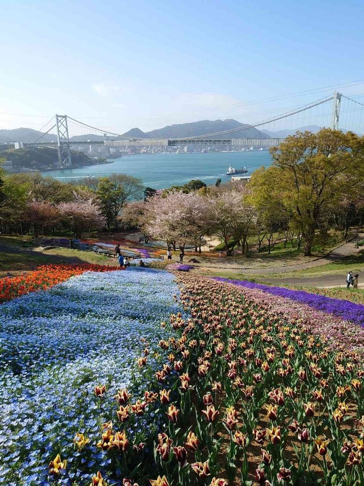 沢山の種類のお花畑、に海峡が見えて絵になりますね🤗💗