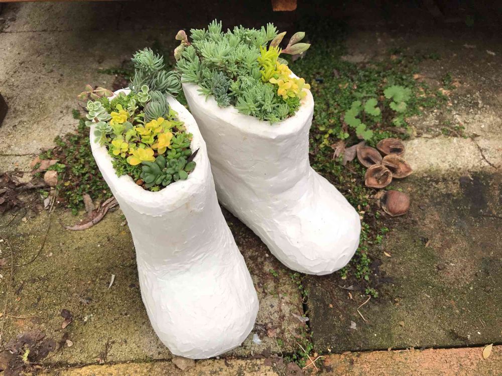 すごく良いアイディア!ながぐつにセメント、出来上がりが、可愛い。子供の長靴は痛まないうちに小さくなってしまいますからね。素晴らしい!