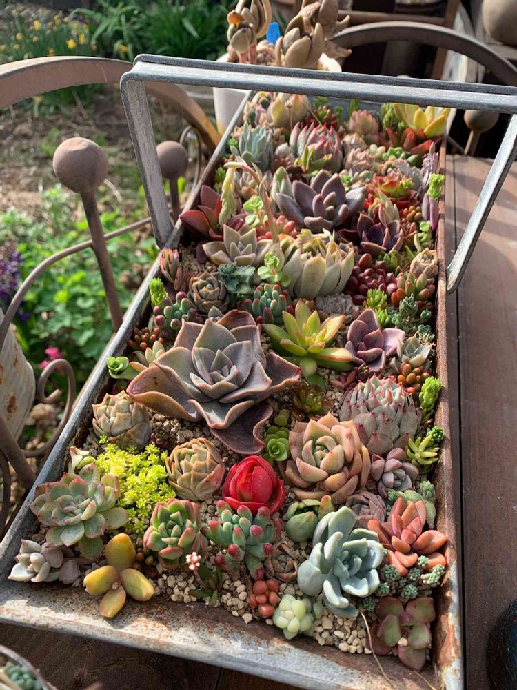 色とりどりの多肉ちゃんの寄せ植え、カワイイですねー🤗💕💕