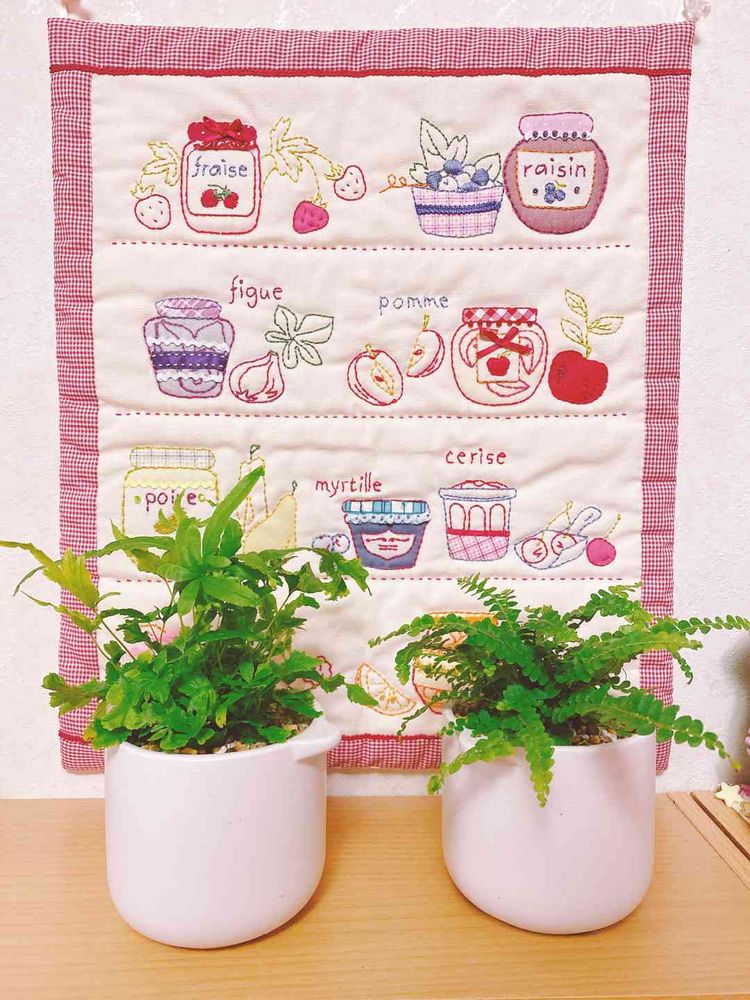 さん 毎月4日は、シダの日で🏠の可愛い奴❤️紹介出来るので参加してます💚🪴タペストリーはジャム🍓ジャム炊くの好きな私にピッタリので作りましたよ😙
