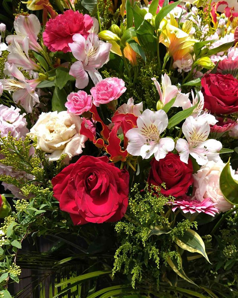 書道展が開催されていて、お祝いアレンジメントの中に、薔薇🌹やカーネーションと一緒に生けられていたアルストロメリアのお花です🤗💕