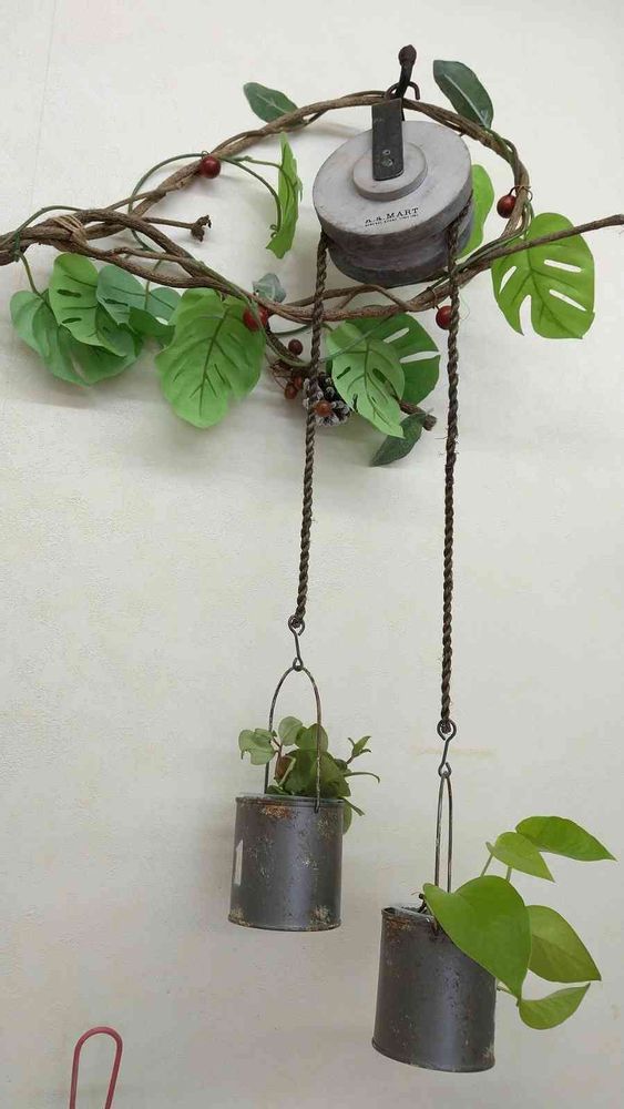 吊り下げタイプの鉢も滑車も多肉もツルも素敵ですね✨😍