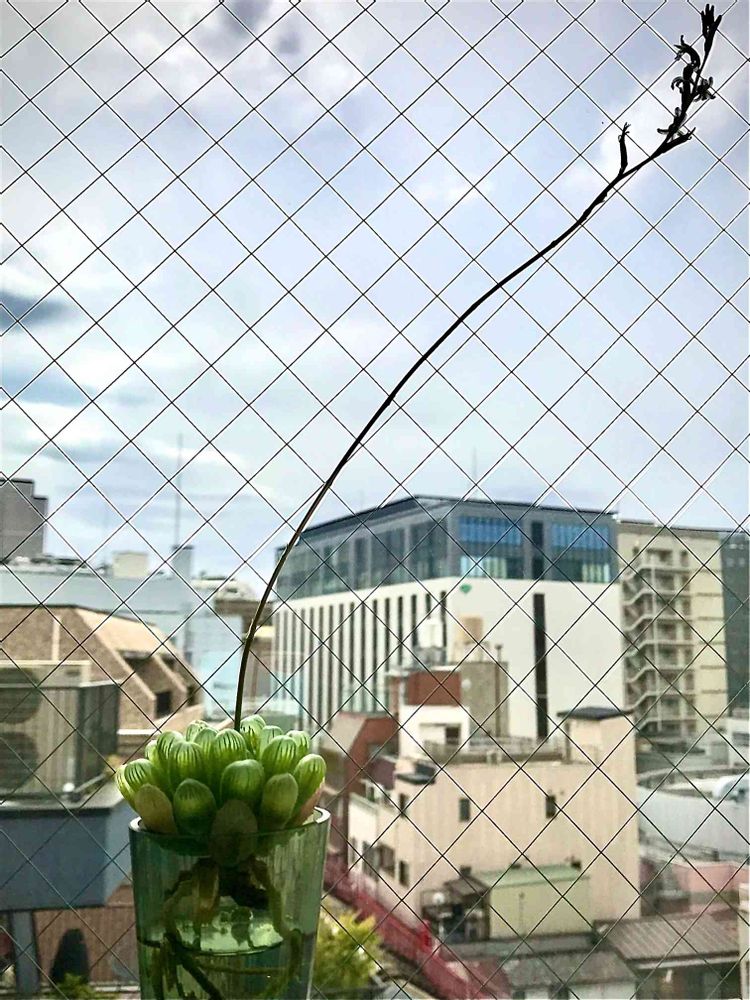 おはようございます。水栽培のハオルチア オブツーサの花が咲いています。日曜日なのに今日も荒れそうな天気ですね(T . T)