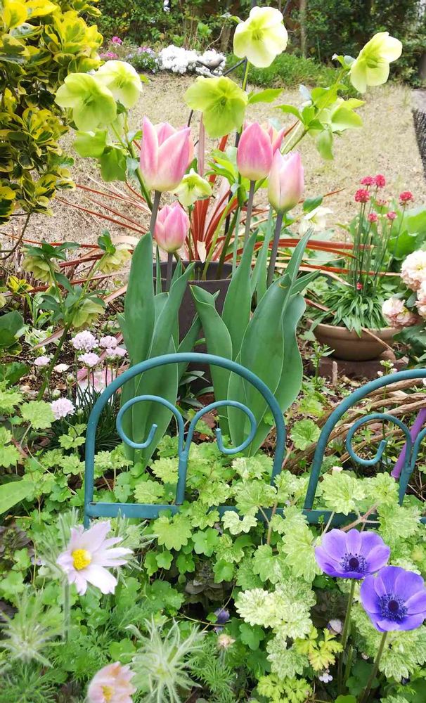 クッキーさんの花壇はいろいろな植物が上手にコラボしていて素敵だね✨🌷🌼🌿