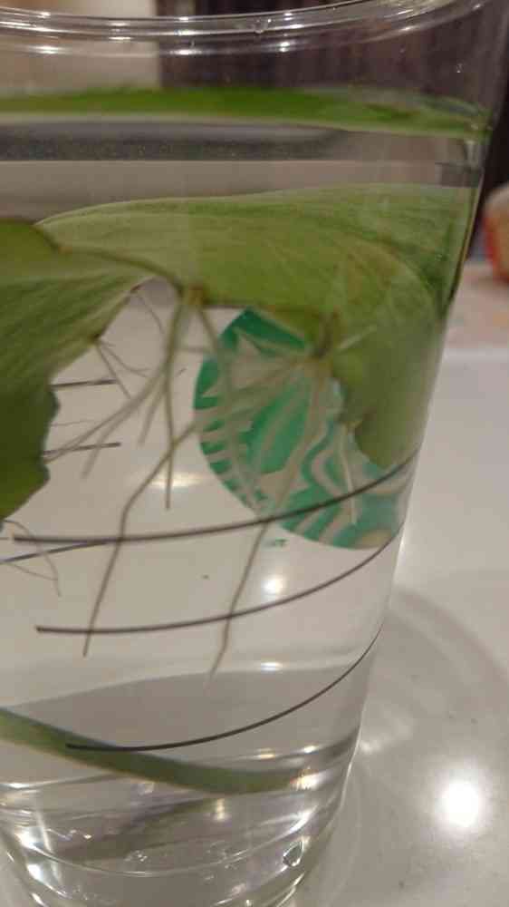 息子が学校から貰ってきて、言われたとおりに育ててみたら、葉っぱから根が出て、芽も出てる👀‼️