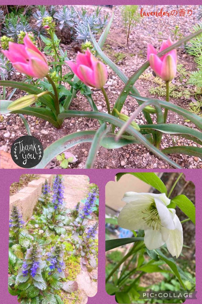 とても素敵な原種チューリップさんとアジュガ、クリスマスローズさんですね🤗