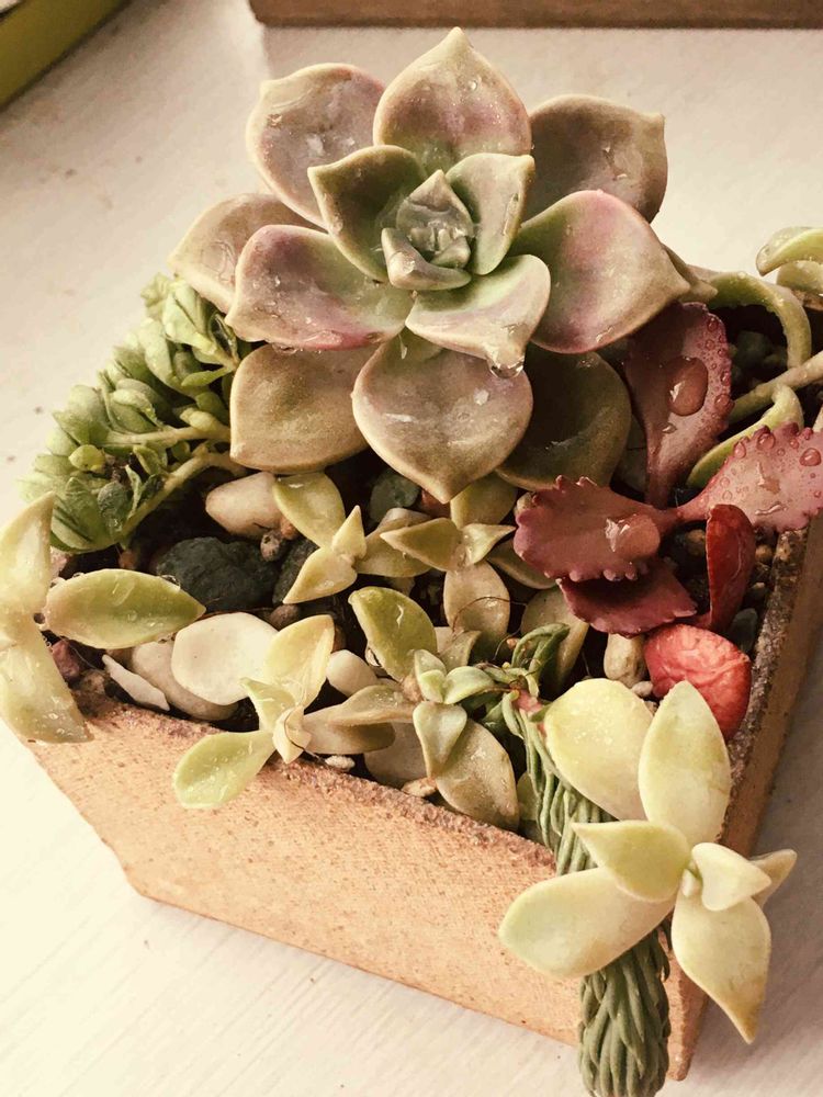 土日のみ営業のお店で、焼き物の多肉寄せ植えを購入→1度空にして再度好みの多肉で寄せ植えリメイク♡