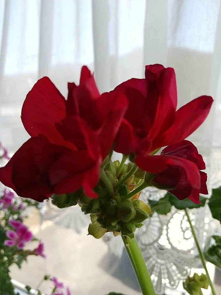 ゼラニウム(カリオペダークレッド)❇️咲きました❣️ちょっとボケちゃった( *´艸)