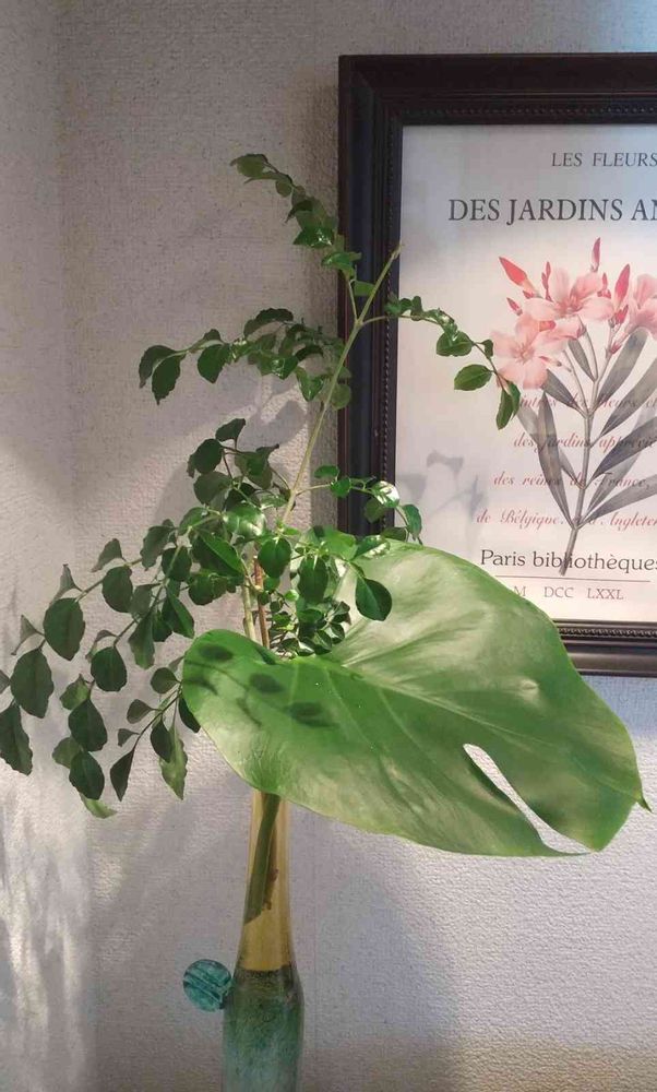 一ヶ所しか切れ込みのない葉もニッチのライトが当たってスタイリッシュ💟🕺💟
