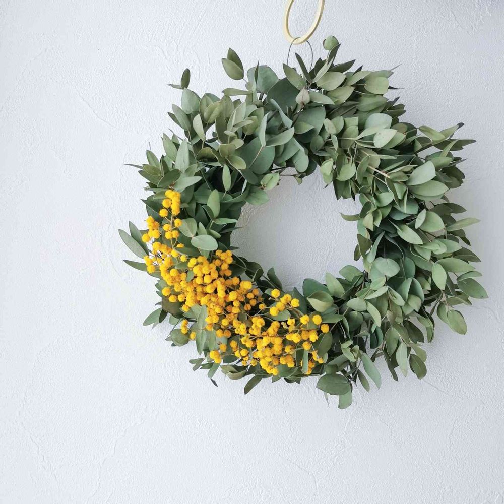 以前作っていたユーカリのリースに、ミモザをプラスしてみました🌿