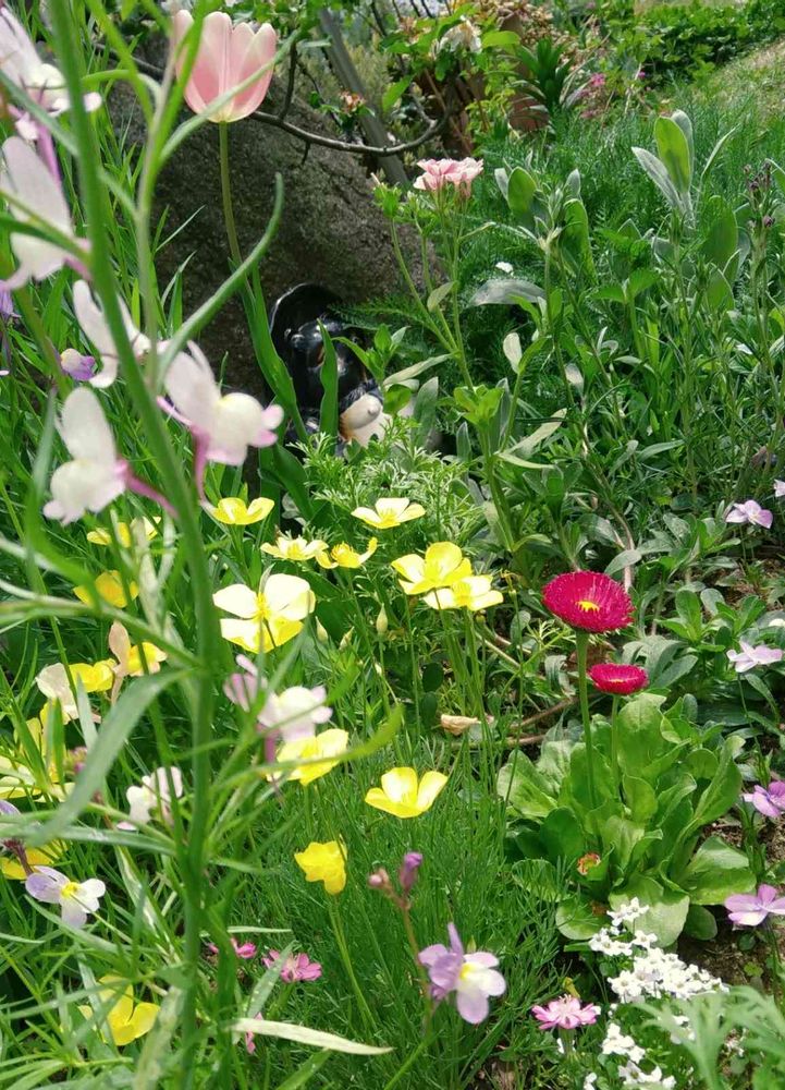 種まきが好きです🌱 一年中お花が咲いている庭を 目指して… …いたら ごちゃごちゃした庭になって しまいました! ダックスのまり🐶と遊びながら いろんなお花を育てています🤗 2017. 3.20~ GSスタート