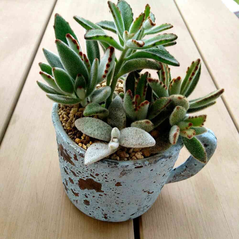 兎🐰ちゃんたち可愛いですよね。可愛い系の鉢かリメ缶に寄せ植えしようかと思ったのですが、たまたま買っておいたコンクリ鉢があって寄せ植えしたら渋くなってしまいました😅