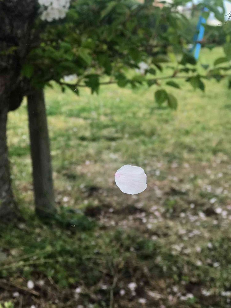 公園の桜を見に行ったら、空中に花びらが一枚浮いていました❣️