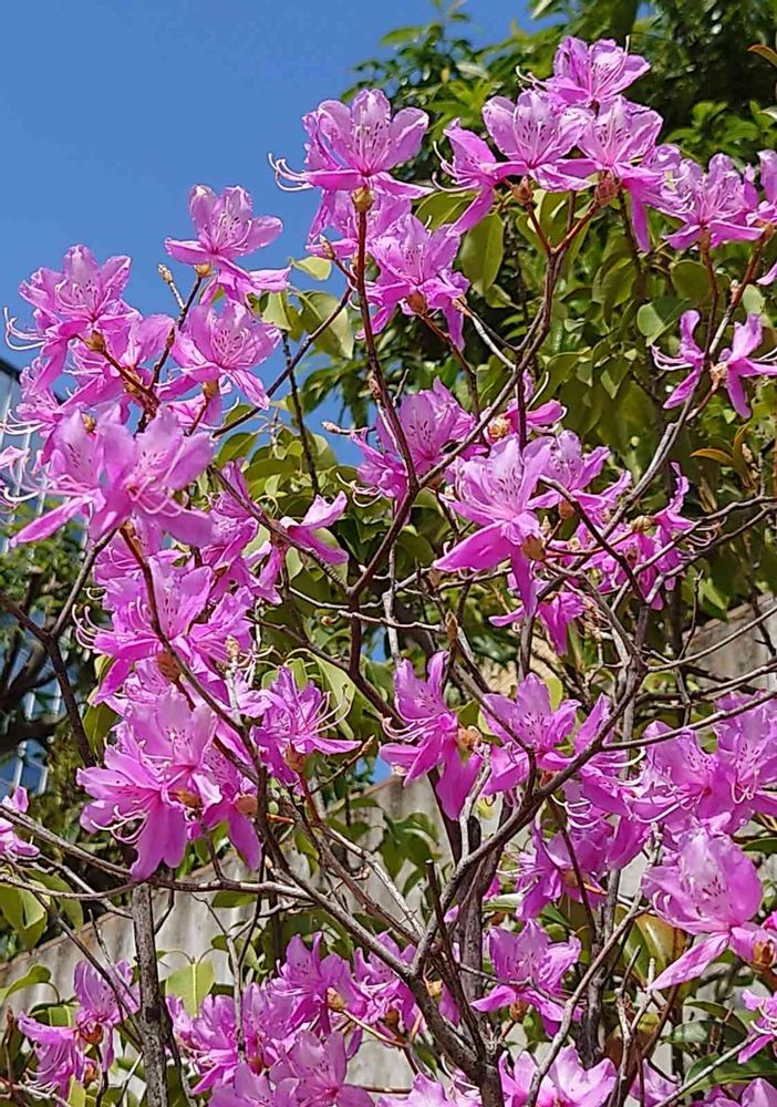 ピンクのエゾムラサキツツジの花、青空に映えて綺麗です✨✨