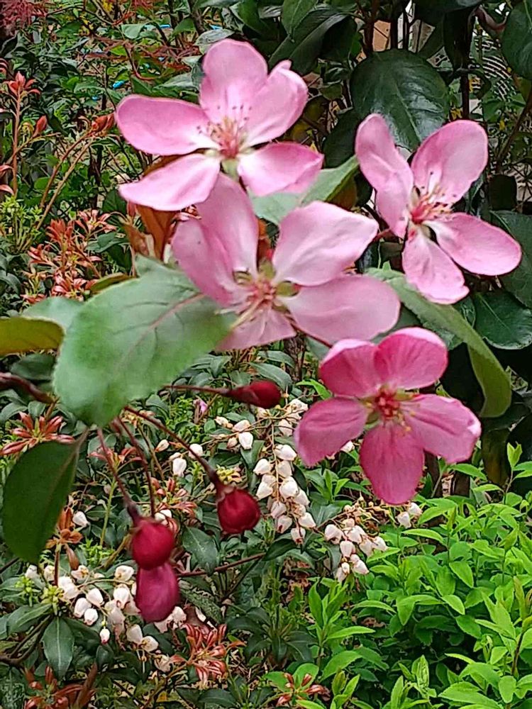 姫リンゴのお花も可愛い色合いで、桜や🌸梅に、負けてないですね ^ - ^