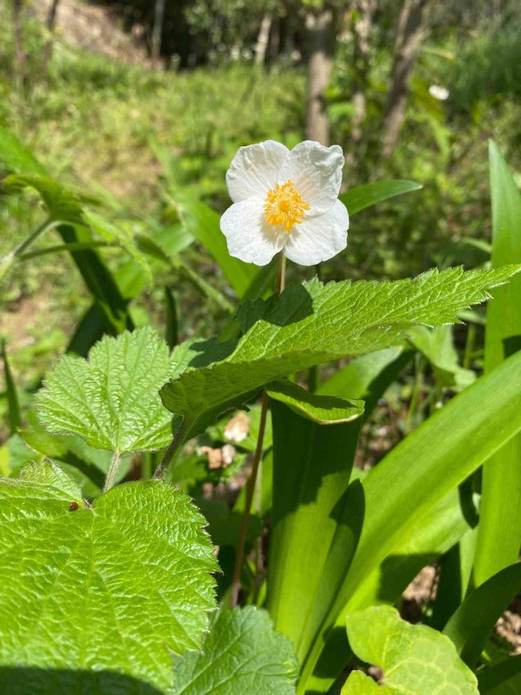 ネットで調べたら、投稿した写真の下の方、ギザギザの葉の下に少し網目模様の葉がのぞいていまして、この葉と花がシラユキゲシにそっくりでしたので、シラユキゲシとします。