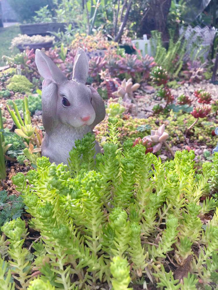 セダムの畑でうさぎちゃん頭かかえて何悩んでるのかな?( ´艸`)