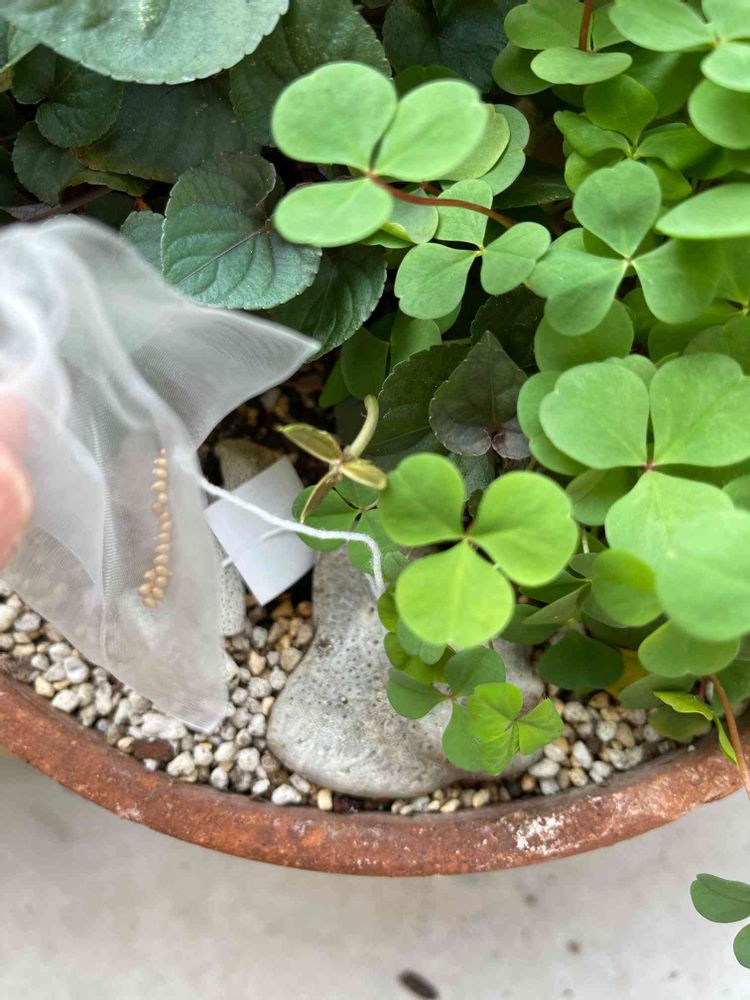 一個だけ、花摘みせずに、紅茶の袋被せ