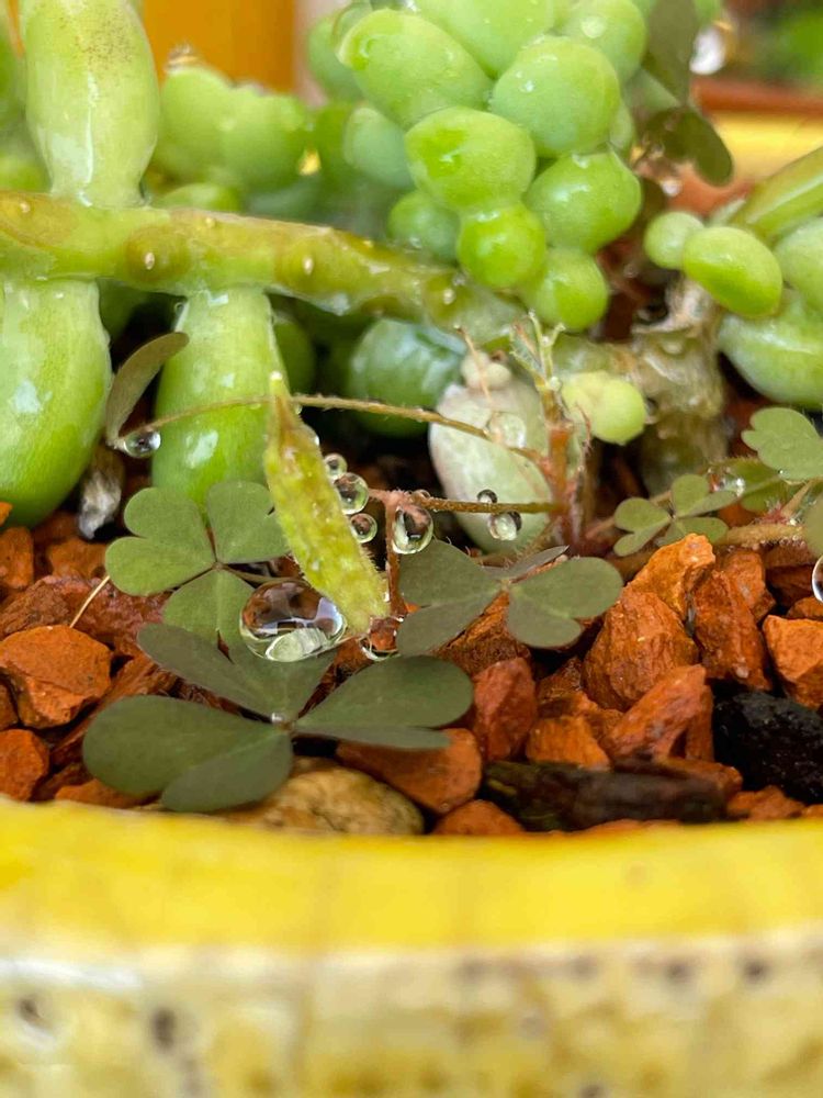 ベランダの水やり中…ビアホップ、鉢を回したら、コッチはカタバミ⁉️