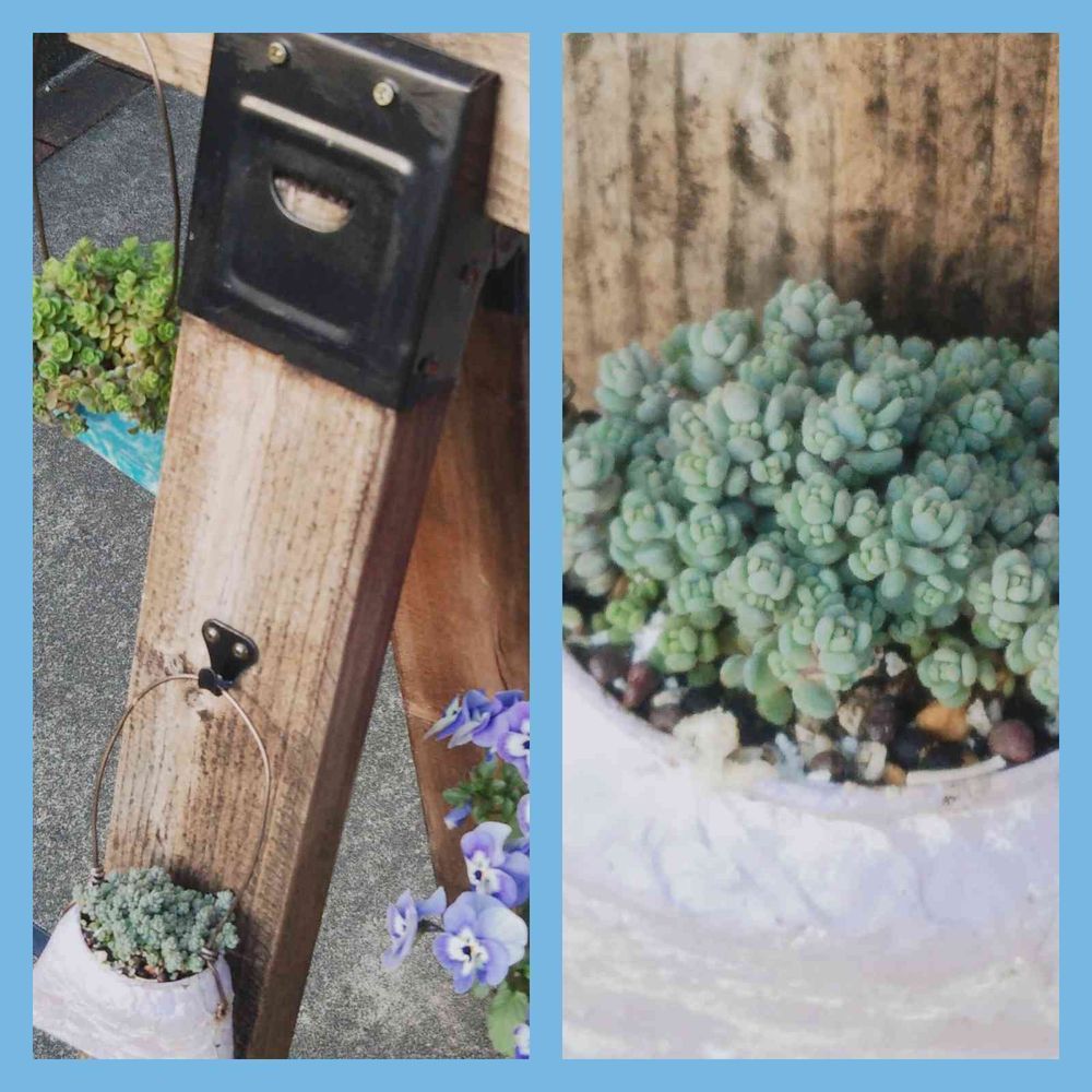 庭や家の中にDIYで作った物と一緒に多肉植物やバラ、寄せ植えをかざって、楽しんでます🌼