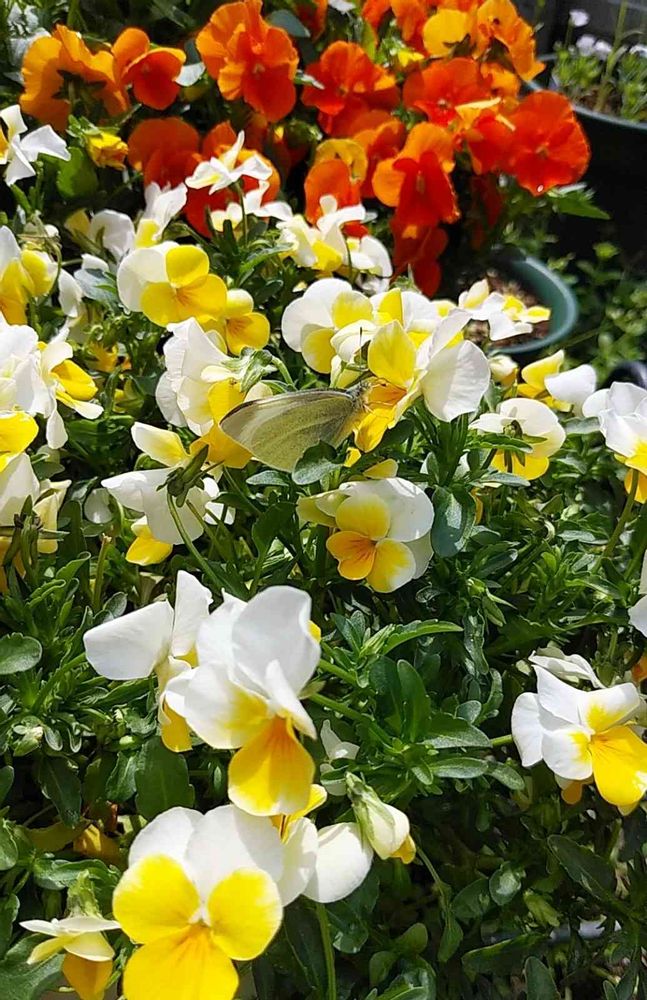 黄色のビオラさんに止まってっは、又ひら~ひら~飛んで、又、黄色のビオラに帰って来て~を繰り返してましたよ~笑😊 可愛いです💝💝