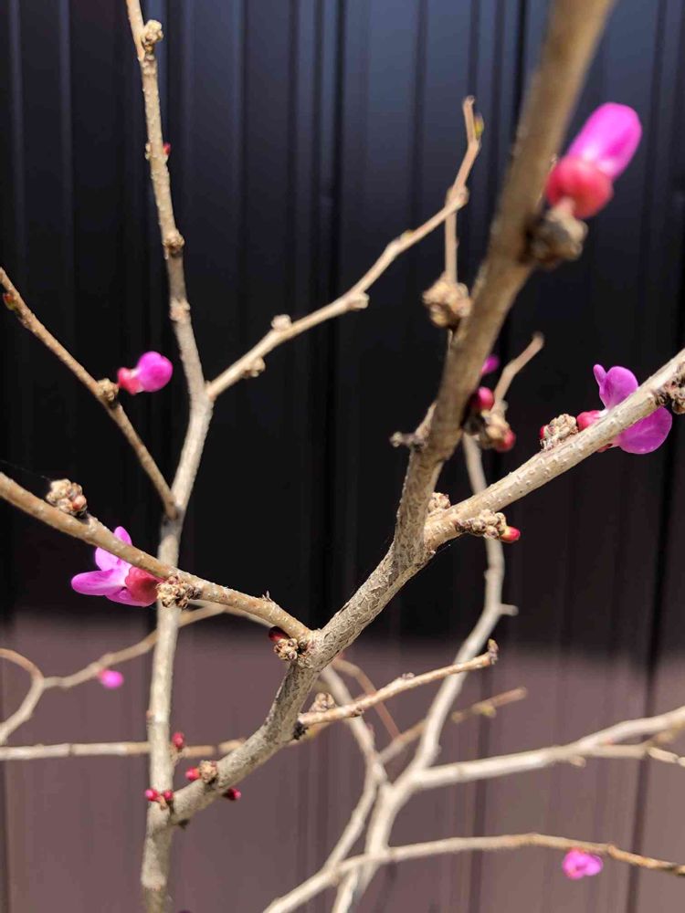花蘇芳(ハナズオウ)の枝に花芽を発見❣️