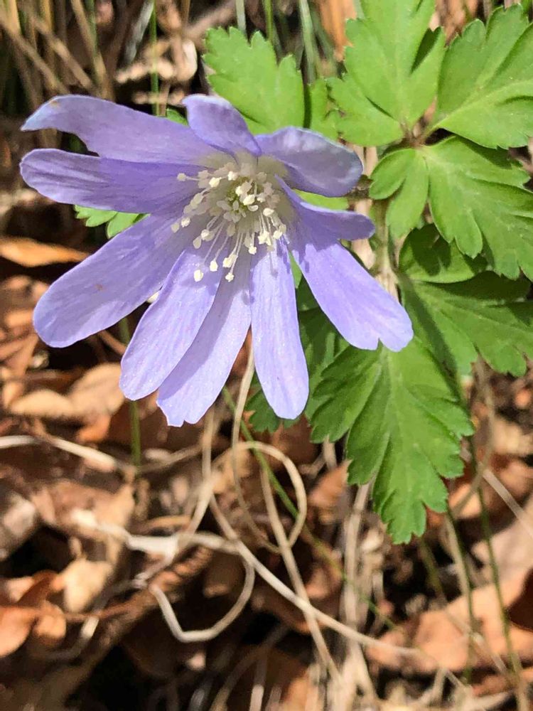 薄紫のキクザキイチゲ、筑波山にはこの花がとても多いです。アズマイチゲよりたくさんあちこちに花開いてます😍💕