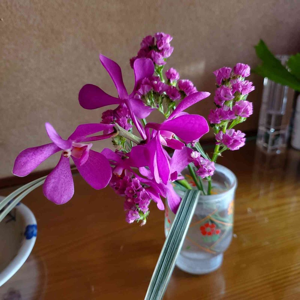 度々、コップから花束ごと飛び出ています😅