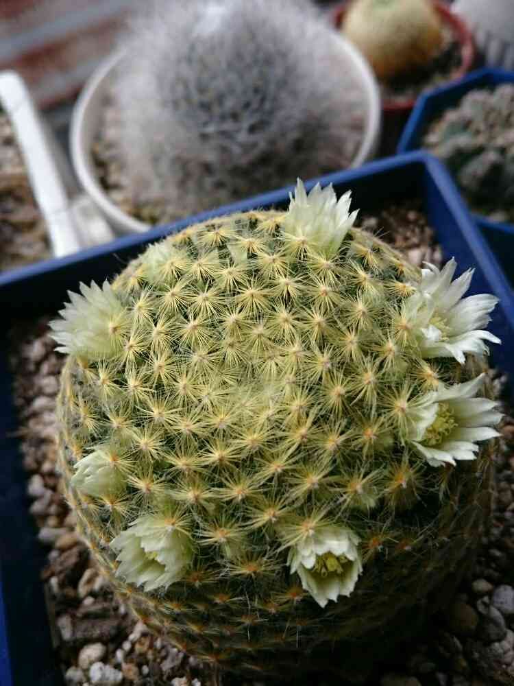 おまんじゅうさぼてん 「明星」の花が 次々に 開き始めてしまいました。